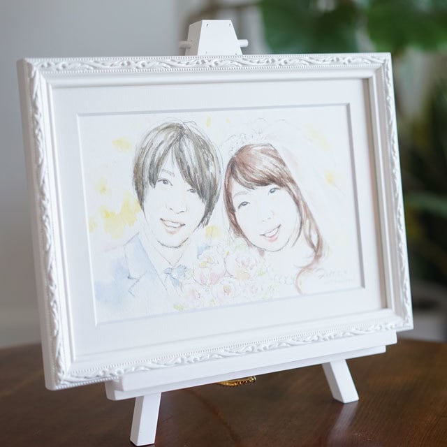 優しい似顔絵(2名) 優雅で上品な木製ホワイトフレーム入り-送料無料-